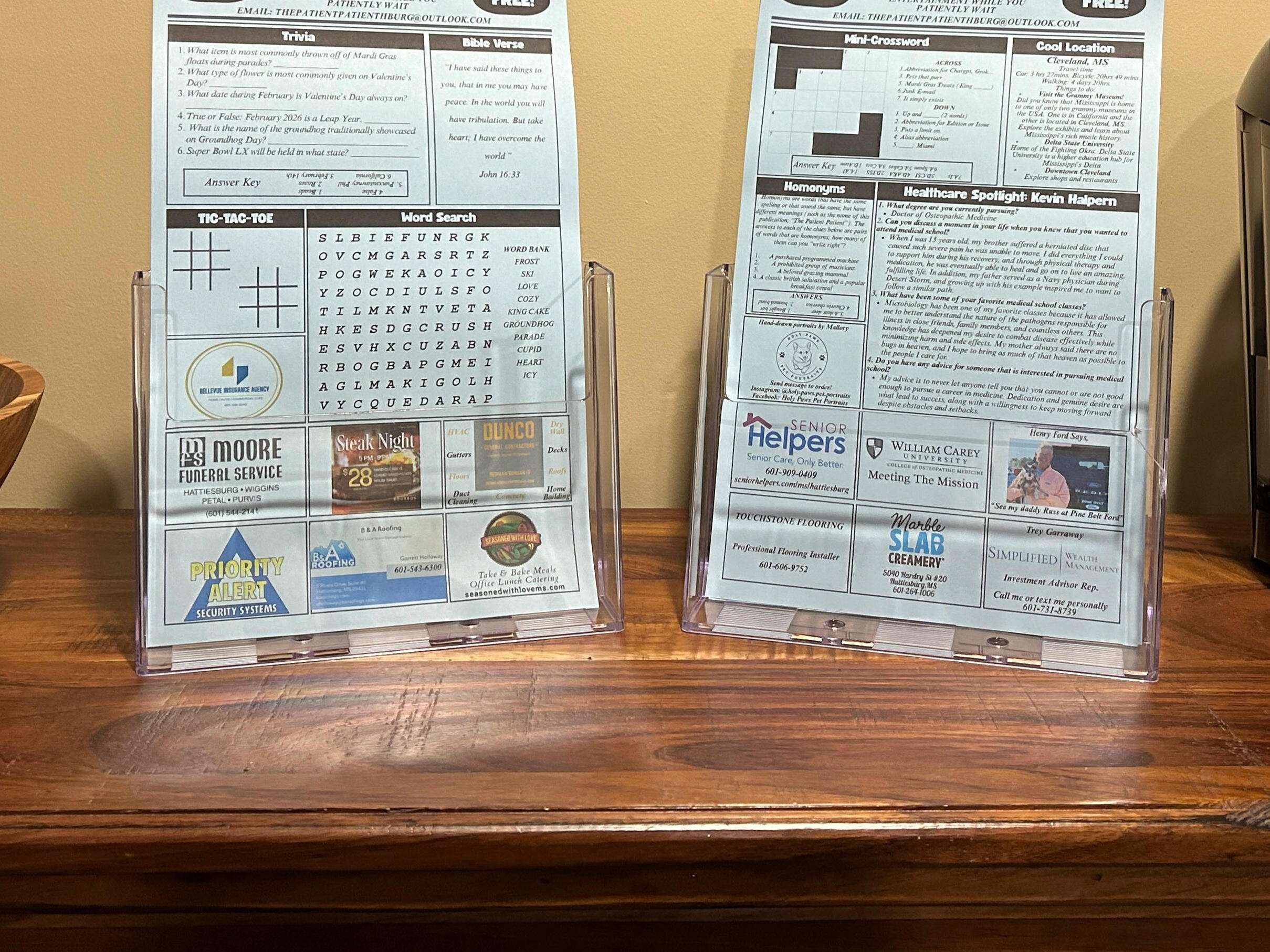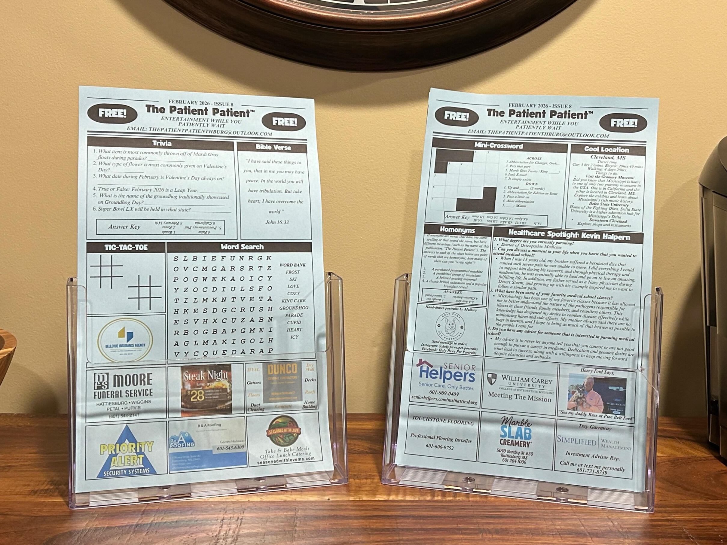 The Patient Patient is a free, one-page publication that is available for pickup in doctors office waiting rooms. It usually consists of various games/entertainment while you wait for your appointment. Some examples include: