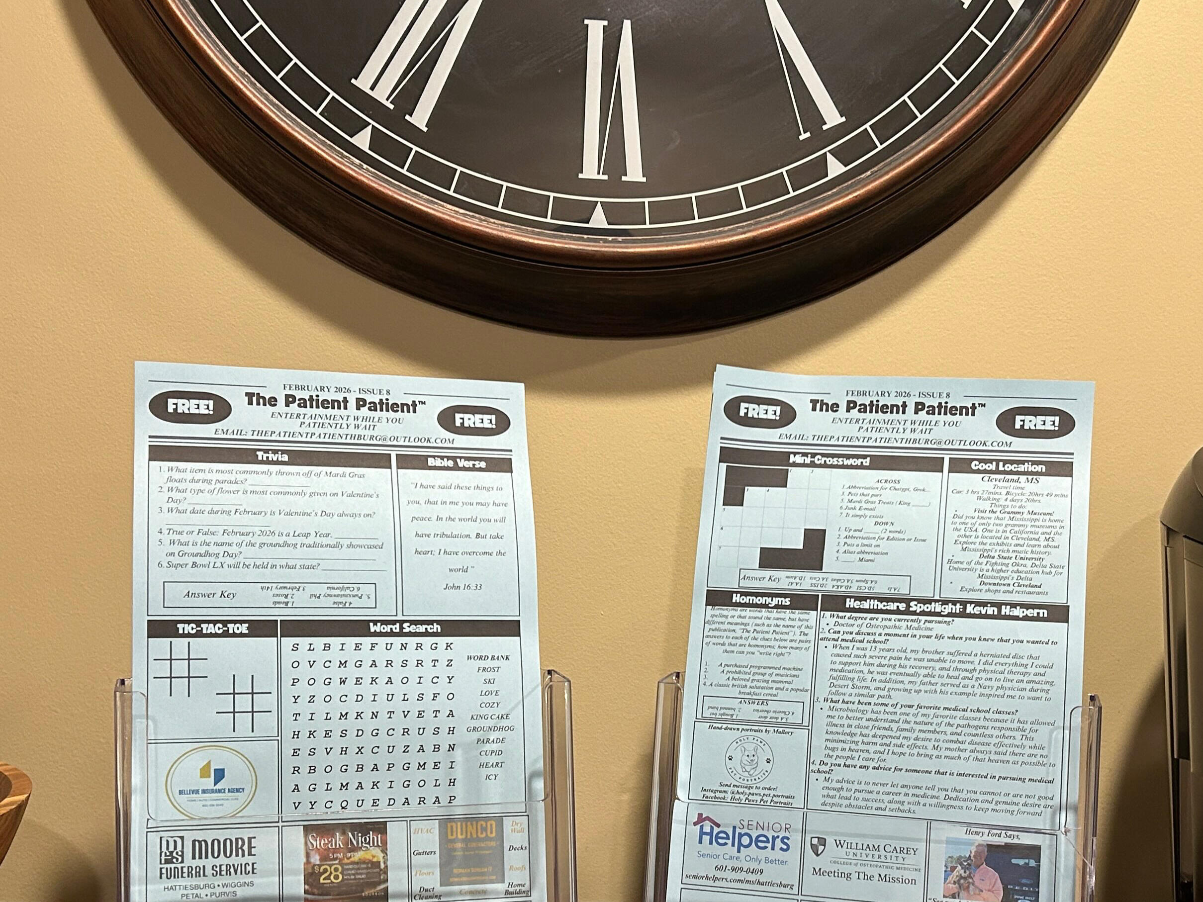The Patient Patient is a free, one-page publication that is available for pickup in doctors office waiting rooms. It usually consists of various games/entertainment while you wait for your appointment. Some examples include: